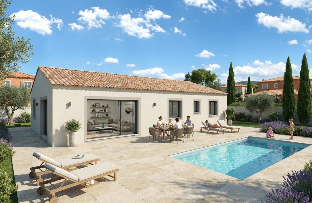 Stéphanie MIAUX des Maisons Blanches (O6.21.84.92.11) vous propose ce projet de construction de maison neuve sur la commune de la Roquebrussanne en Provence Verte