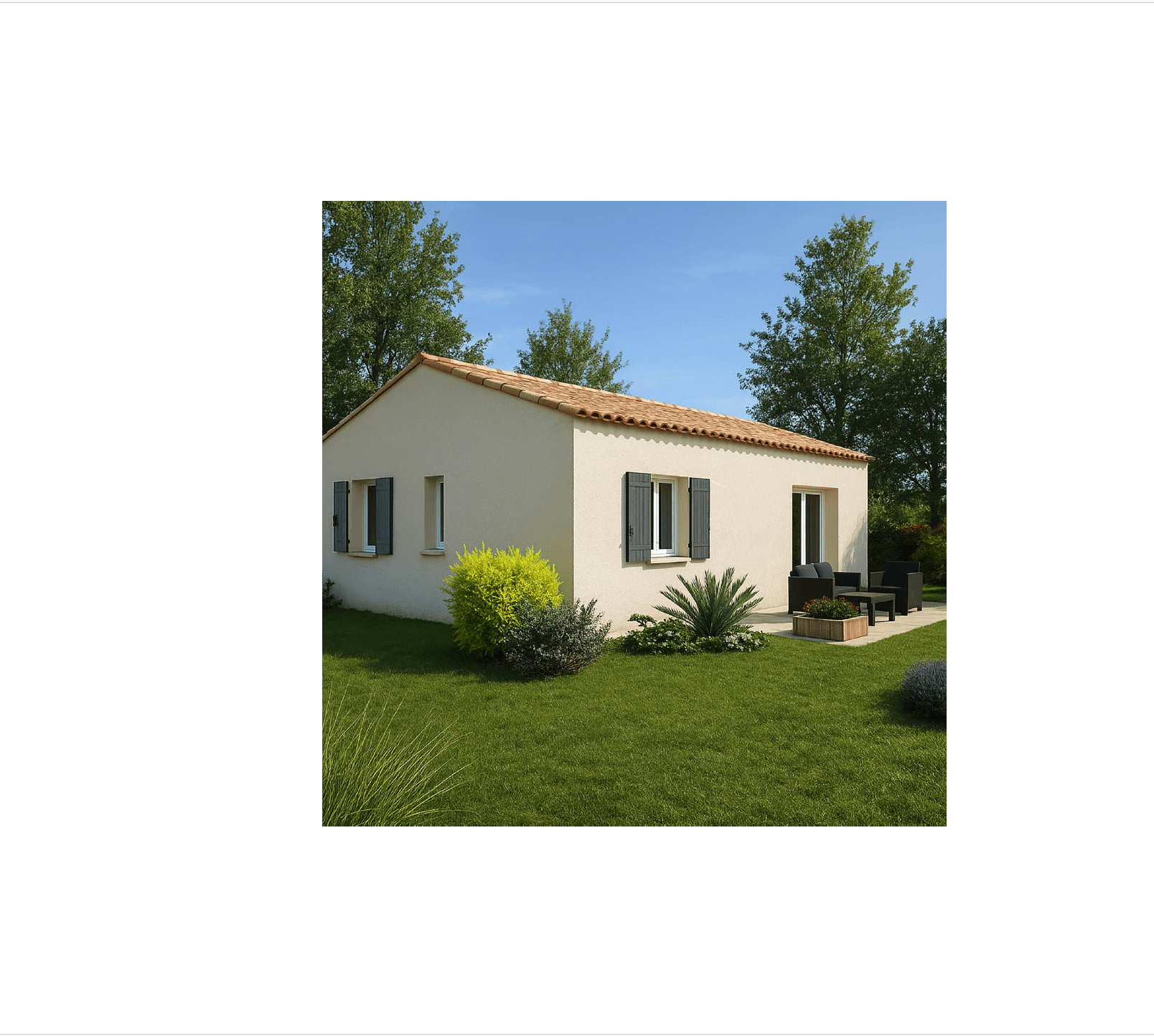 Maisons Blanches vous propose sur un beau terrain de 800 m², votre villa plain pied de 80 m² habitable avec 3 chambres