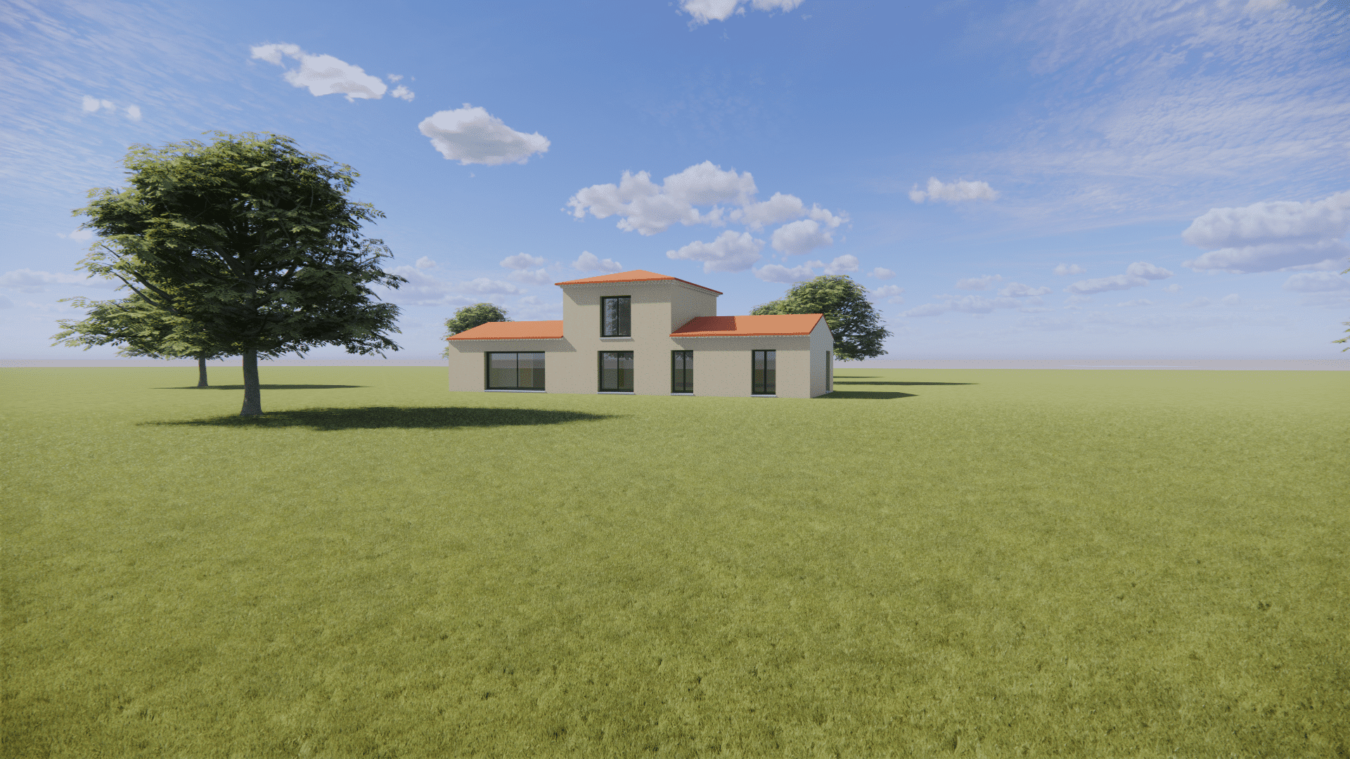 Maisons Blanches vous propose sur un magnifique terrain de 3100 m² , votre villa à étage partiel de 155 m² habitable avec 4 chambres et garage